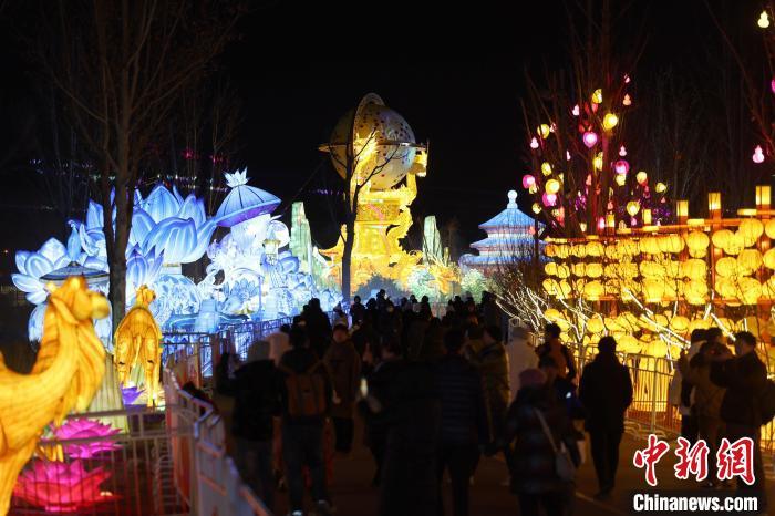 2024年12月28日,“2025北京千灯夜”在北京温榆河公园朝阳示范区西园正式拉开帷幕。中新社记者 富田 摄