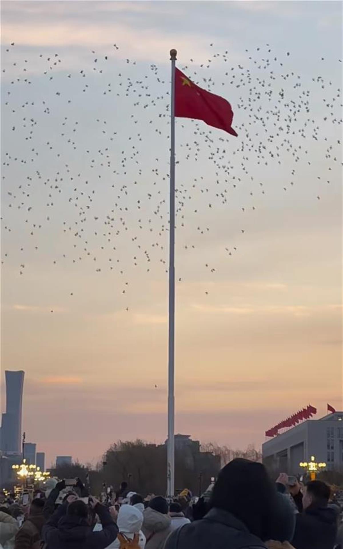 1月1日清晨,5.1万人齐聚天安门广场,共同迎接2025年第一天的升旗仪式。有游客为抢一个好位置,提前八九个小时到天安门附近排队;有游客中转换乘路过北京,不顾路途疲惫,凌晨赶到天安门等候。