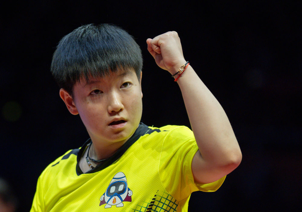 1月1日,深圳大学队选手孙颖莎在单打比赛后庆祝胜利。新华社记者 孙非 摄