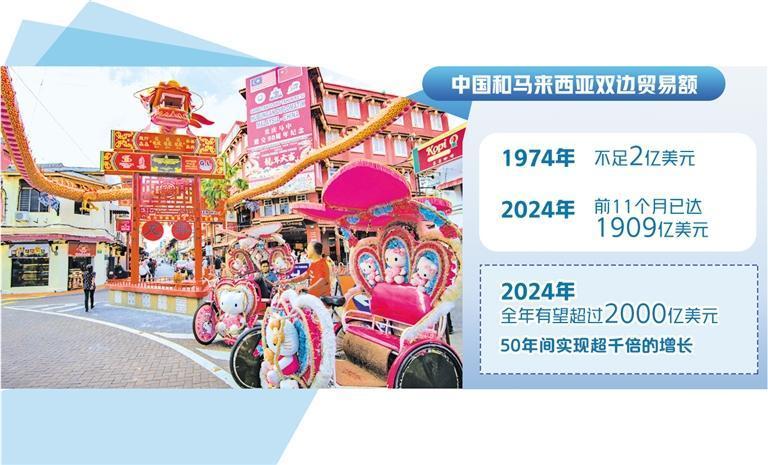 近日,在吉隆坡举行的2024年马来西亚—中国峰会开幕式上,中国驻马来西亚大使欧阳玉靖表示,中马两国经贸合作势头强劲,成果丰硕,在两国关系中发挥着动力源和推进器的重要作用。他表示,1974年两国建交时双边贸易额不足2亿美元,2024年前11个月已达1909亿美元,全年有望超过2000亿美元,再创新高,50年间实现超千倍的增长。