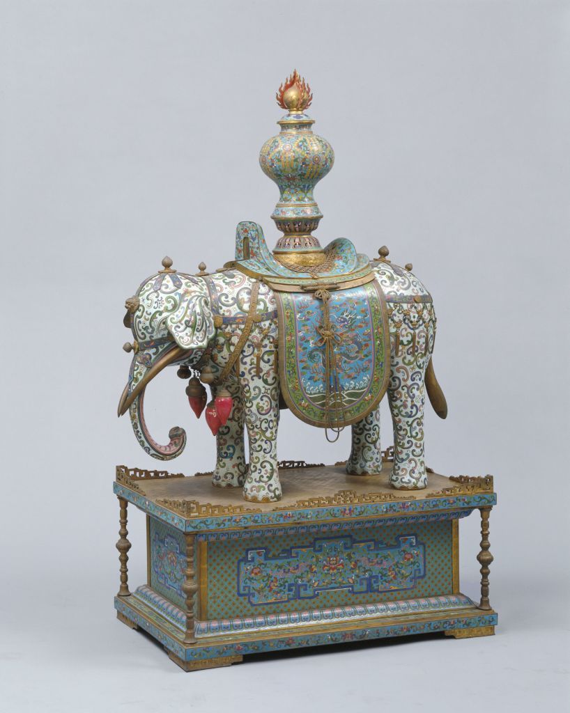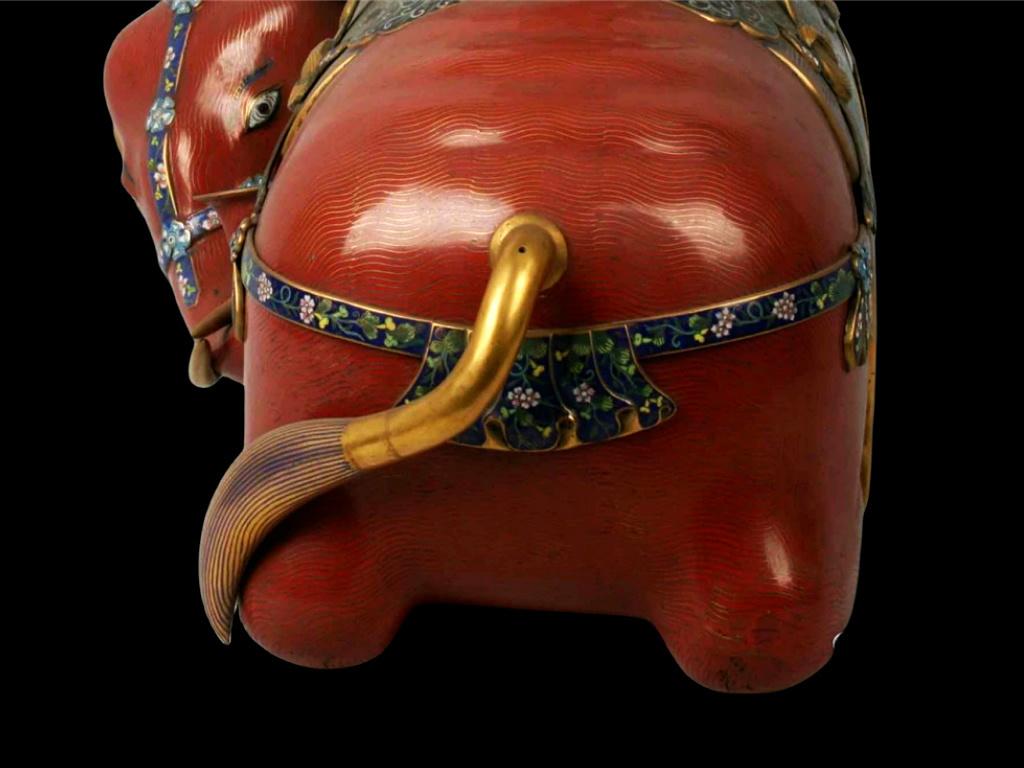 (乾隆时期,掐丝珐琅工艺全面兴盛,达到巅峰,掐丝珐琅器应用在宫廷陈设、宗教仪典、日常实用等方面。)