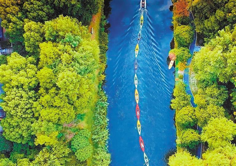 2024年10月5日,游客在焕新开放的杨浦新江湾城文化体育公园划桨逐浪。 黄昆震摄(中经视觉)