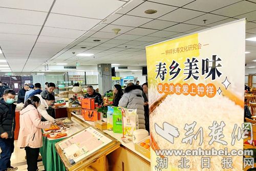 荆楚网(湖北日报网)讯( 通讯员 赵继、钟国庆)12月31日,由钟祥市长寿研究会组织的“寿乡优品”展销活动在湖北省政府机关食堂成功举办。此次活动汇集了钟祥本地的7D菜籽油、黄仙洞、葛娃、仙之灵、豆康豆业、润物、新布局、兴利等11家农业企业,共同推介展销包括钟祥四宝在内的系列名优特长寿食品。