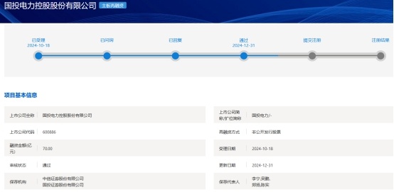 中国经济网北京1月2日讯 上交所网站显示,国投电力(600886.SH)向特定对象发行证券于2024年12月31日获通过。