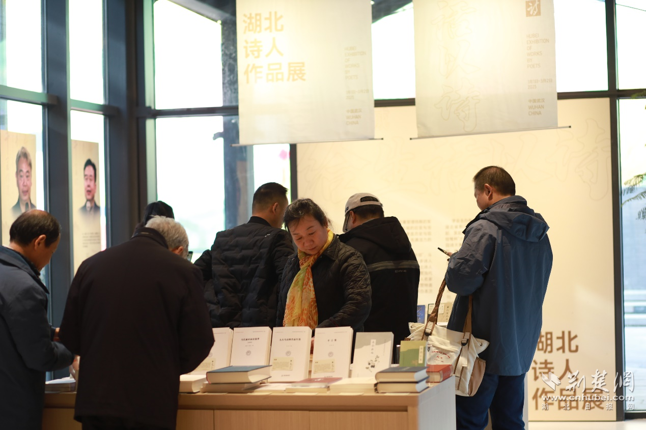 荆楚网(湖北日报网)讯(通讯员 徐景政)声声诗词吟诵,阵阵袅袅琴音,萦绕在武昌桥头、黄鹤楼下,为改造焕新、人群熙攘的武昌古城斗级营片区平添缕缕书香。1月1日,由湖北省中华诗词学会、武昌古城文旅集团主办的“湖北诗人作品展”,在位于斗级营的全国首家诗词主题书店华拾书店拉开帷幕。