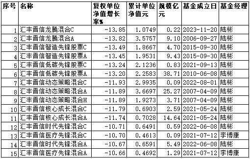 汇丰晋信旗下2024年12月跌超10%基金一览