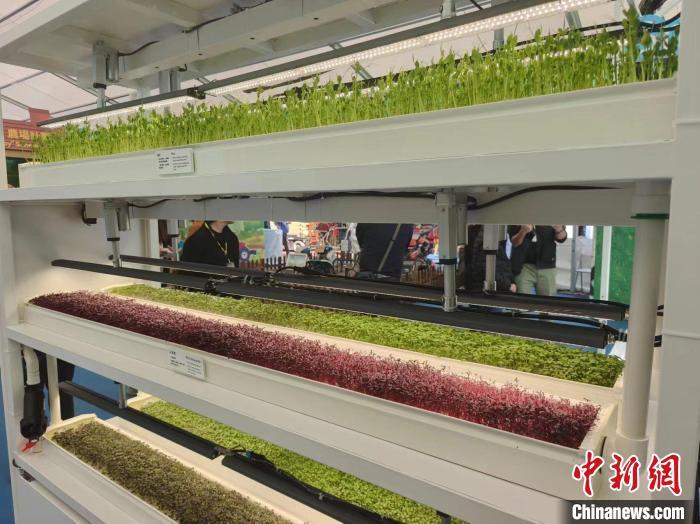 图为2025年香港“本地渔农美食嘉年华”展出的智能照明系统,该系统可培育豌豆、红苋菜等农作物。 中新社记者 孙悦 摄