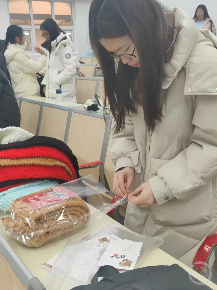 织围巾的大学生前来分享心得