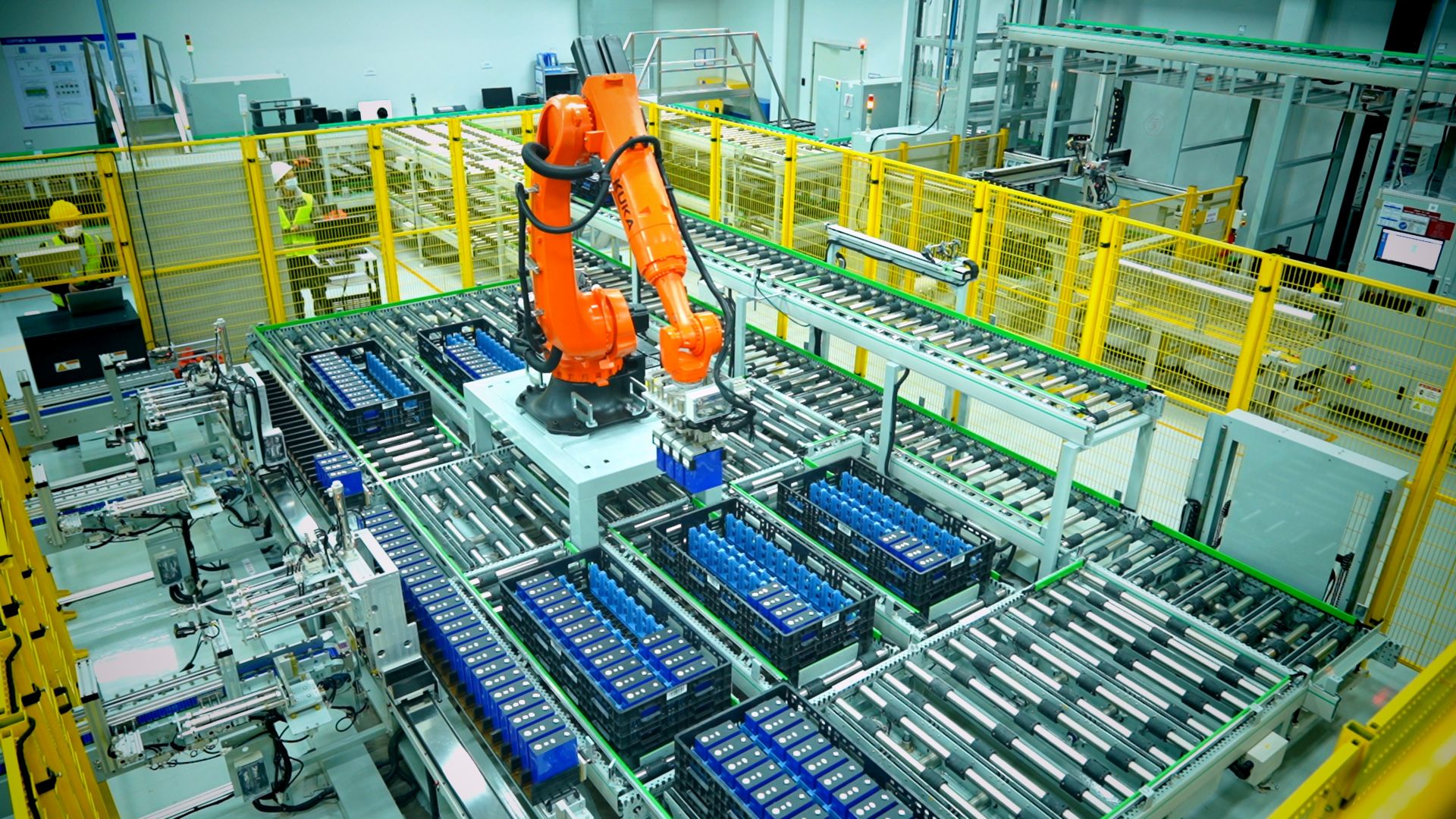 在模组pack智能化生产线,电芯通过串并联、pack系统等程序,生产出模组pack。