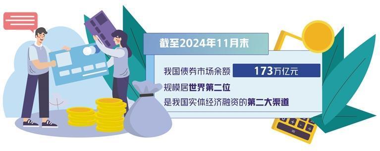 近年来,我国债券市场总体运行平稳,市场深度、广度不断拓展,市场活跃度和交易量稳步提升,服务实体经济功能持续增强。中国人民银行数据显示,截至2024年11月末,我国债券市场余额173万亿元,规模居世界第二位,是我国实体经济融资的第二大渠道。中国债券先后被纳入彭博巴克莱、摩根大通、富时罗素三大国际债券指数。截至2024年11月末,共有1156家境外投资者进入中国债券市场,持债规模4.2万亿元。