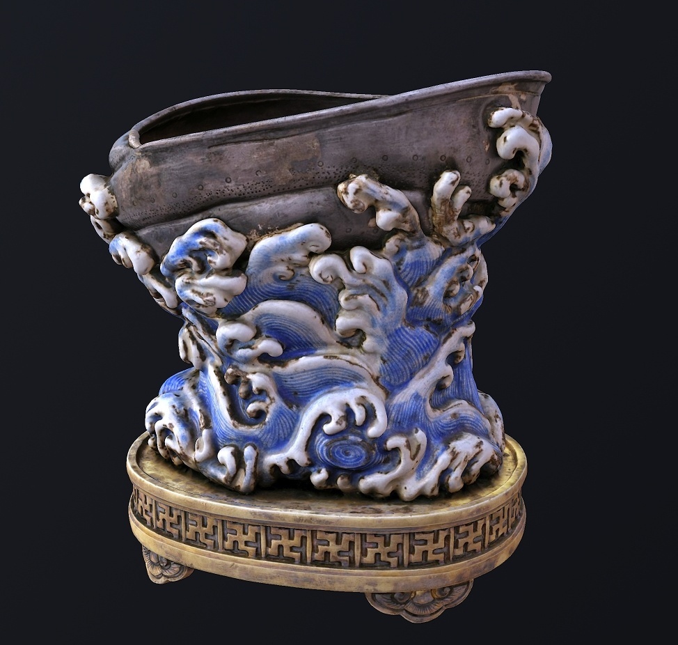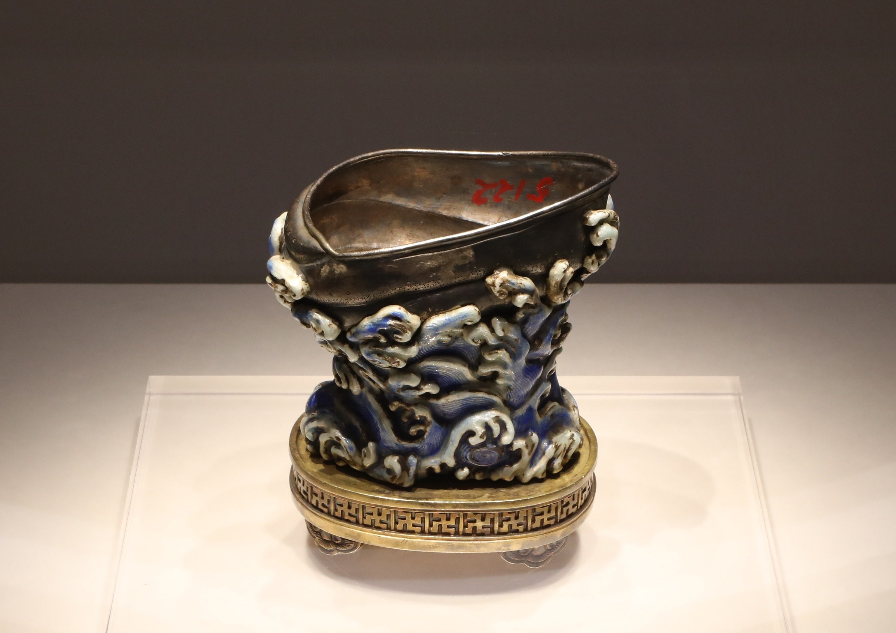海螺为银制,浪花为银烧蓝工艺