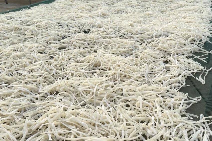 选米、磨浆、烙制、切丝......经过一道道工序。