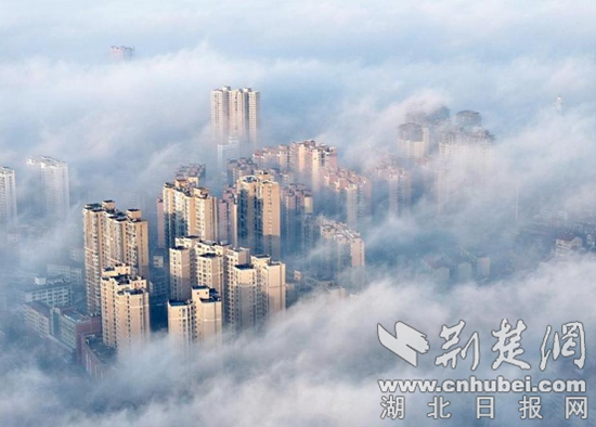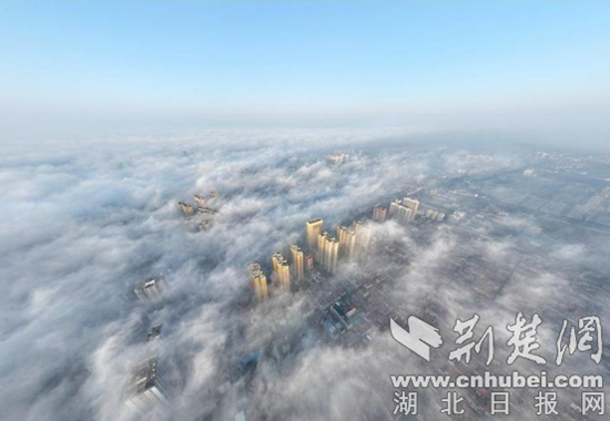 钟祥城市上空云雾缭绕,仿佛置身仙境。通讯员 供图