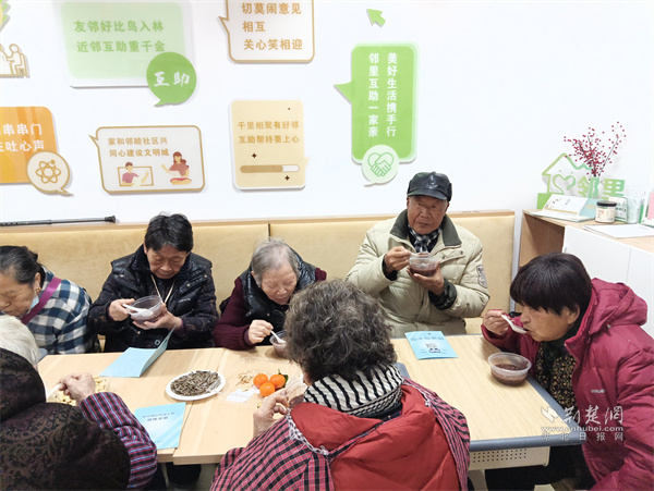 会议结束后,自治小组成员和志愿者们分工合作,开始熬煮腊八粥。小区居民和新就业群体职工受邀来到现场,一边品尝着寓意生活美满、幸福安康的营养粥品,一边闲话家常,感受着来自社区大家庭的关怀和温暖。