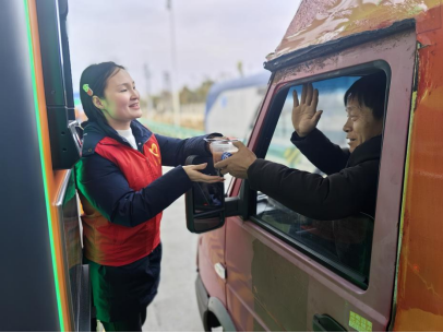 司乘表达着对腊八粥的喜爱与感激。志愿者们与过往司乘展开亲切友好的交流,耐心倾听他们的旅途故事。一碗碗满载温情的“爱心粥”成为志愿者们对司机群体深切关怀与美好祝愿的生动载体。过往司乘对这份惊喜,纷纷赞叹:“粥好喝,心里更暖和了。”