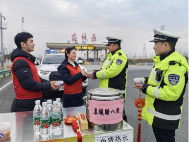 “哎呀,没想到在收费站还能品尝到如此地道的腊八粥,真是美味又暖心,太感谢你们了!”