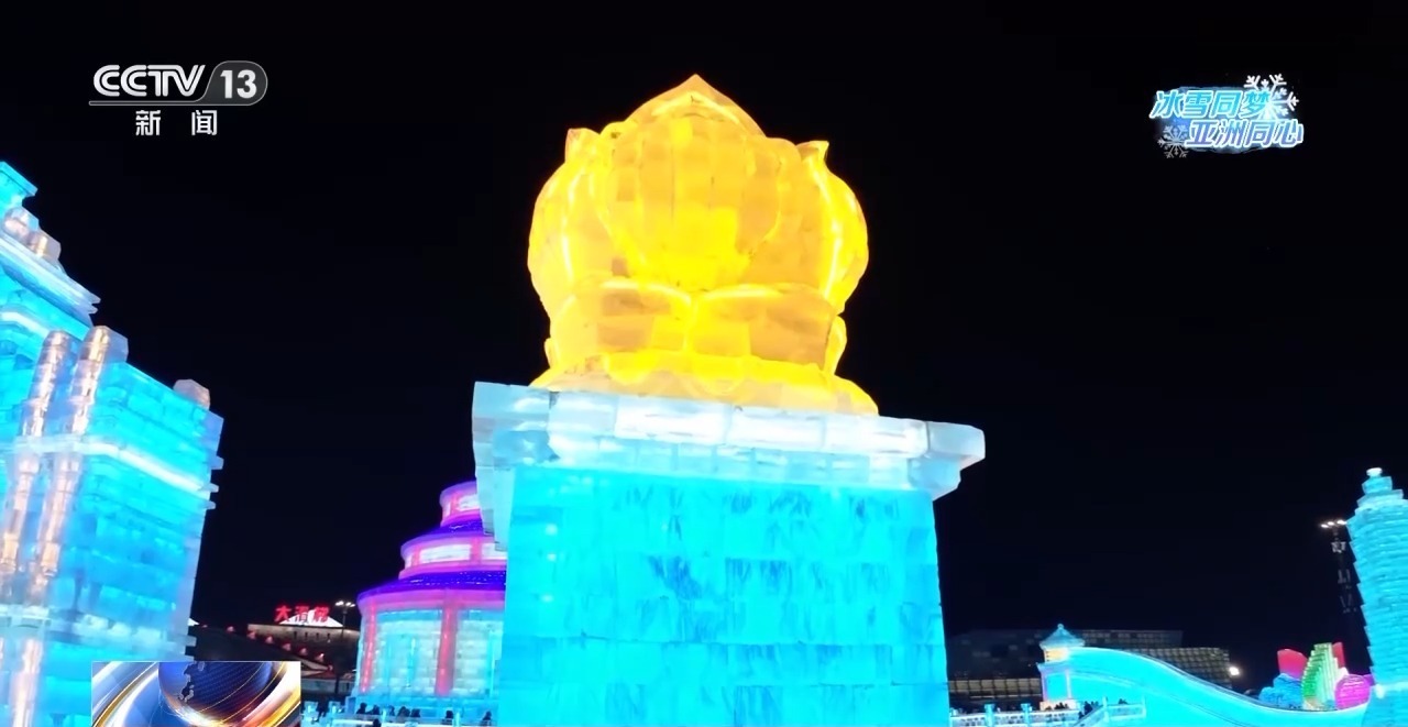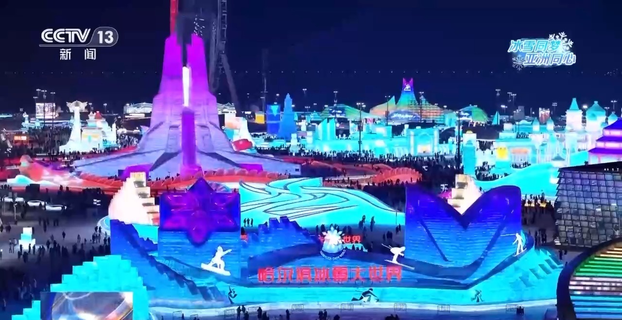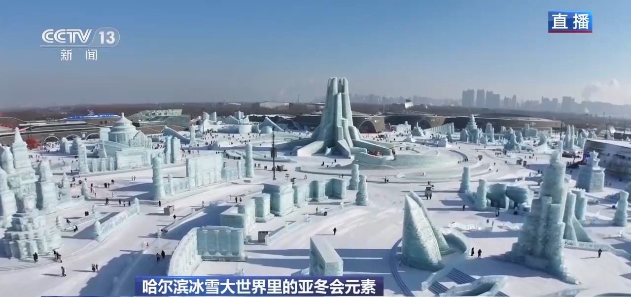 眼下,哈尔滨已经进入亚冬会时间,大街小巷亚冬会氛围浓厚。今年,哈尔滨冰雪大世界园区的设计和建设也充分融入亚冬会元素。
