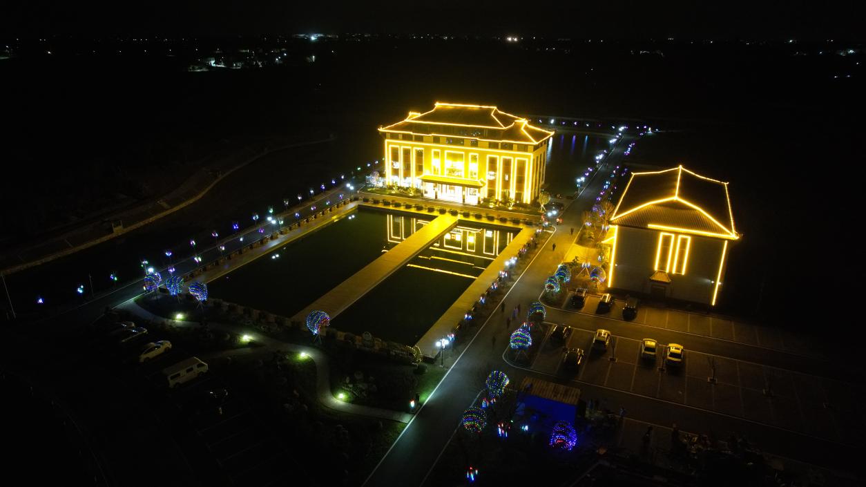 这个露营公园是邹岗镇在 2023 年全力引进的农文旅融合项目,如今一期完工,已然给这片曾经荒芜的土地注入了鲜活的生命力。稻梦星空酒店、太子米展厅、太子稻研学馆错落有致,在夜色笼罩下,庄重中透着几分神秘。游客们漫步其间,不仅能沉醉于迷人的夜景,还能一头扎进当地深厚的农耕文化里,真切地触摸到乡村发展的强劲脉搏。