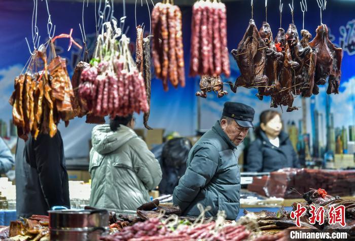 图为市民选购腊货。中新社记者 刘新 摄