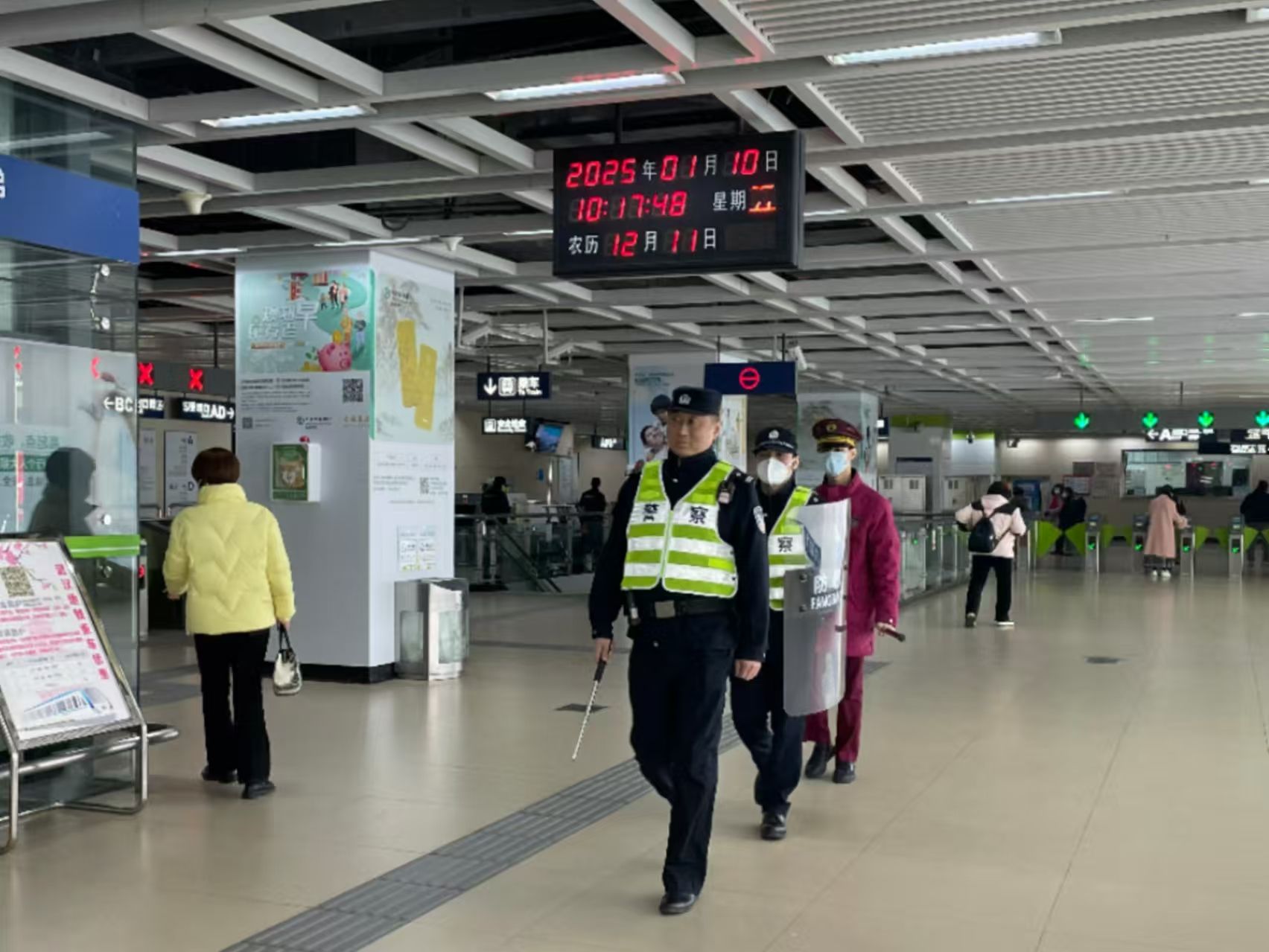临近春节,武汉轨道公安结合岁末年初社会治安规律特点,充分发挥“平安地铁联盟”作用,分批次开展“地毯式”“拉网式”清查整治,重点对地铁商铺、高架站顶棚和附属设施等进行检查,对检查中发现的问题立即整改,坚决消除各类安全隐患,确保轨道交通运营安全。同时,协调地铁运营公司在楼梯、进出站通道等重点部位安排专人值守,提前摆放各类防护设施,适时提醒过路乘客注意防滑、防摔。