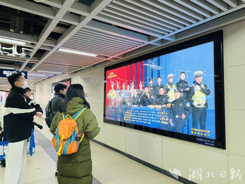 2024“荆楚最美基层民(辅)警”海报、警察节视频、长江沿岸主题灯光秀……省公安厅还联动各地公安机关在机场、火车站、地铁、广场等公共场所,开展警察节主题宣传。