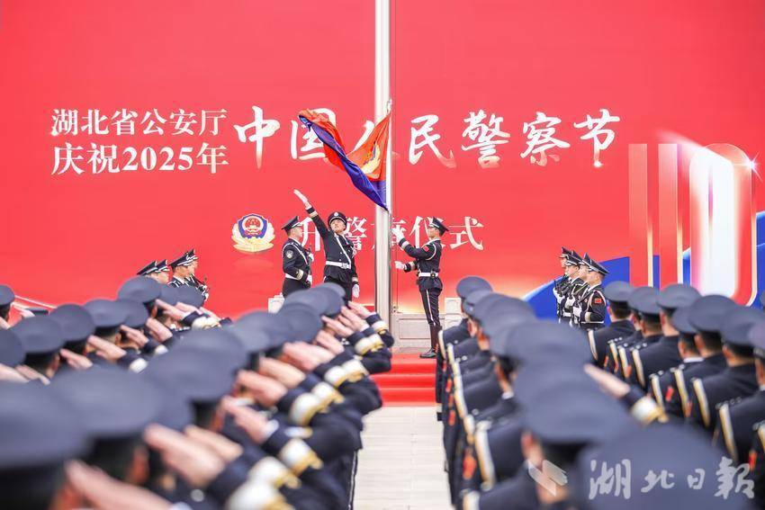 湖北省公安厅举行中国人民警察节升警旗仪式。