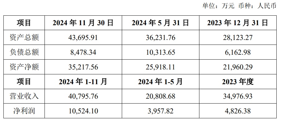 公告显示,中山海济2023年、2024年1-11月实现营业收入34,976.93万元、40,795.76万元,实现净利润4,826.38万元、10,524.10万元。