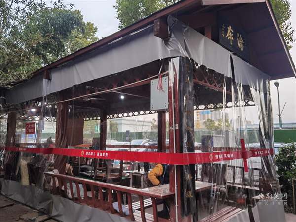 据悉,该长廊一直是社区居民平日休闲聚会的主要场所,由于冬日严寒,居民难以在此正常活动。为此,工会小组成员聘请工人加装防风围挡和保暖帘,有效阻挡寒风侵袭。同时,还借此机会更换部分损坏桌椅,为居民们提供更加舒适、整洁的休闲空间。