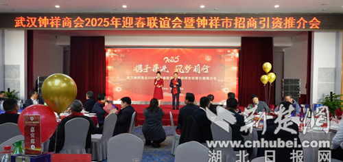 荆楚网(湖北日报网)讯(通讯员 赵继、王琛)1月11日,武汉钟祥商会2025年迎春联谊会暨钟祥市招商引资推介会在武汉举行。市委书记张勇出席活动并致辞,市委副书记、市长李鹏,武汉钟祥商会会长徐良忠,湖北省楚商联合会执行秘书长程爱芬,市委常委、常务副市长刘大伟,市委常委、市委办公室主任高云,市委常委、市委统战部部长刘涛出席活动。