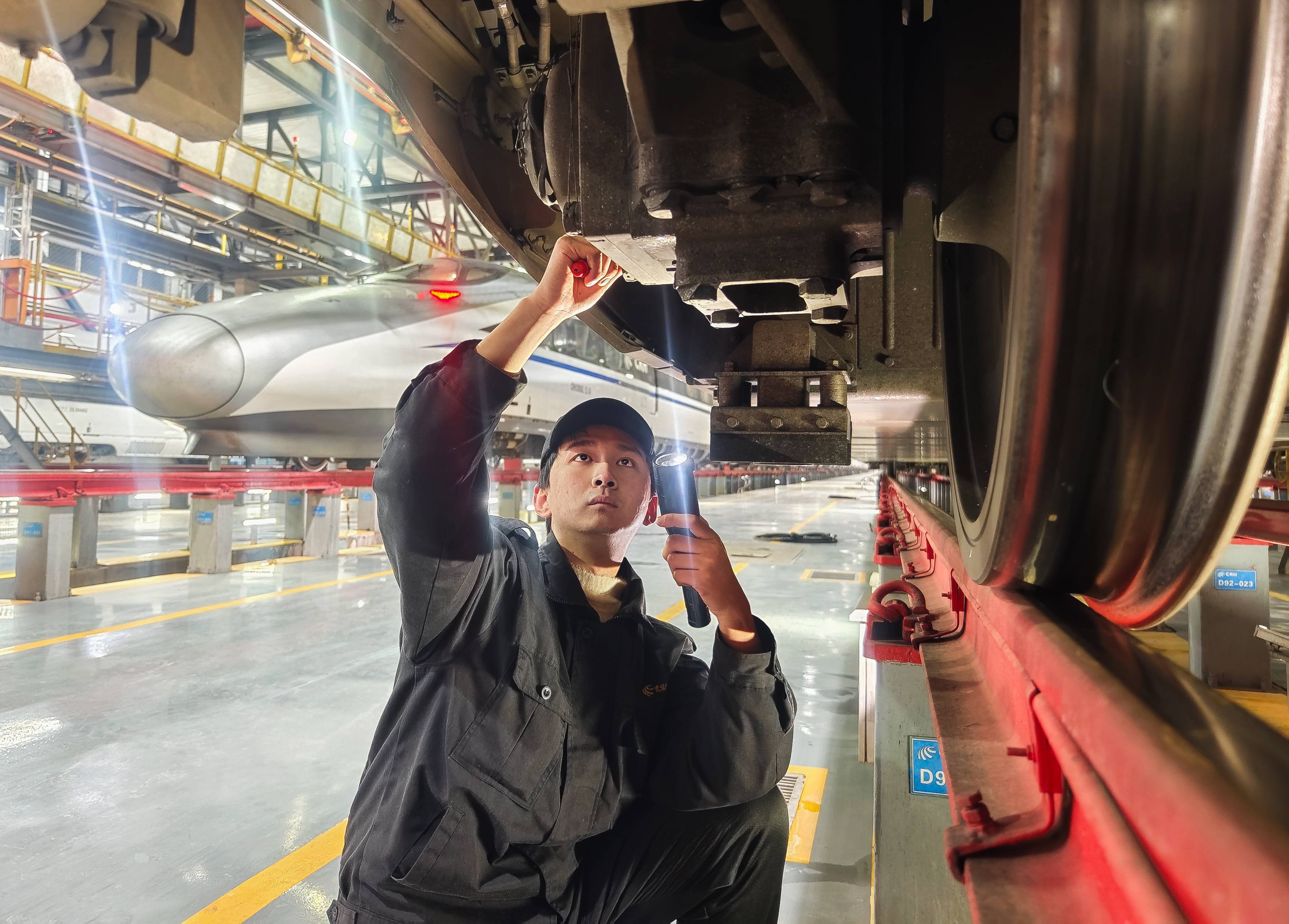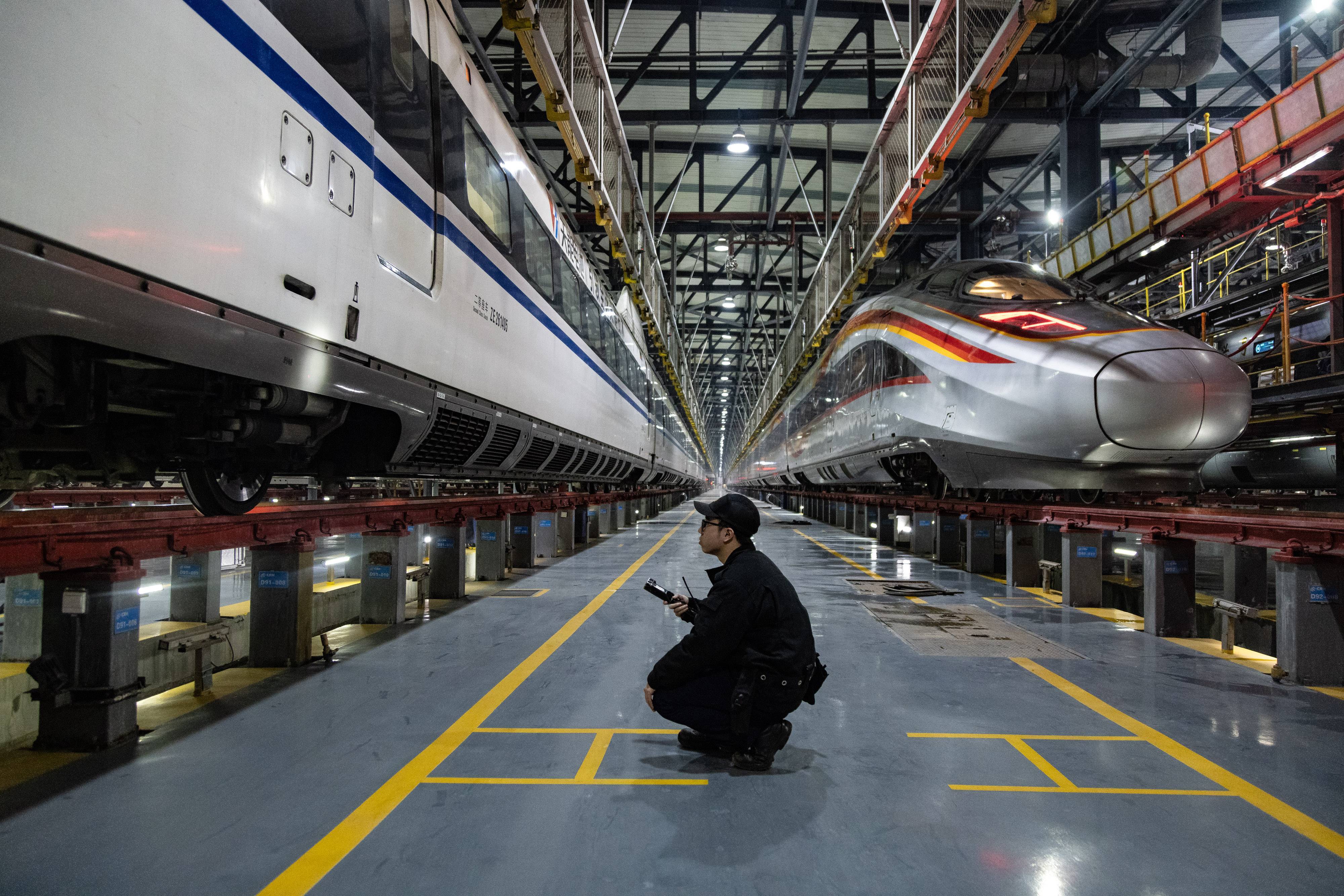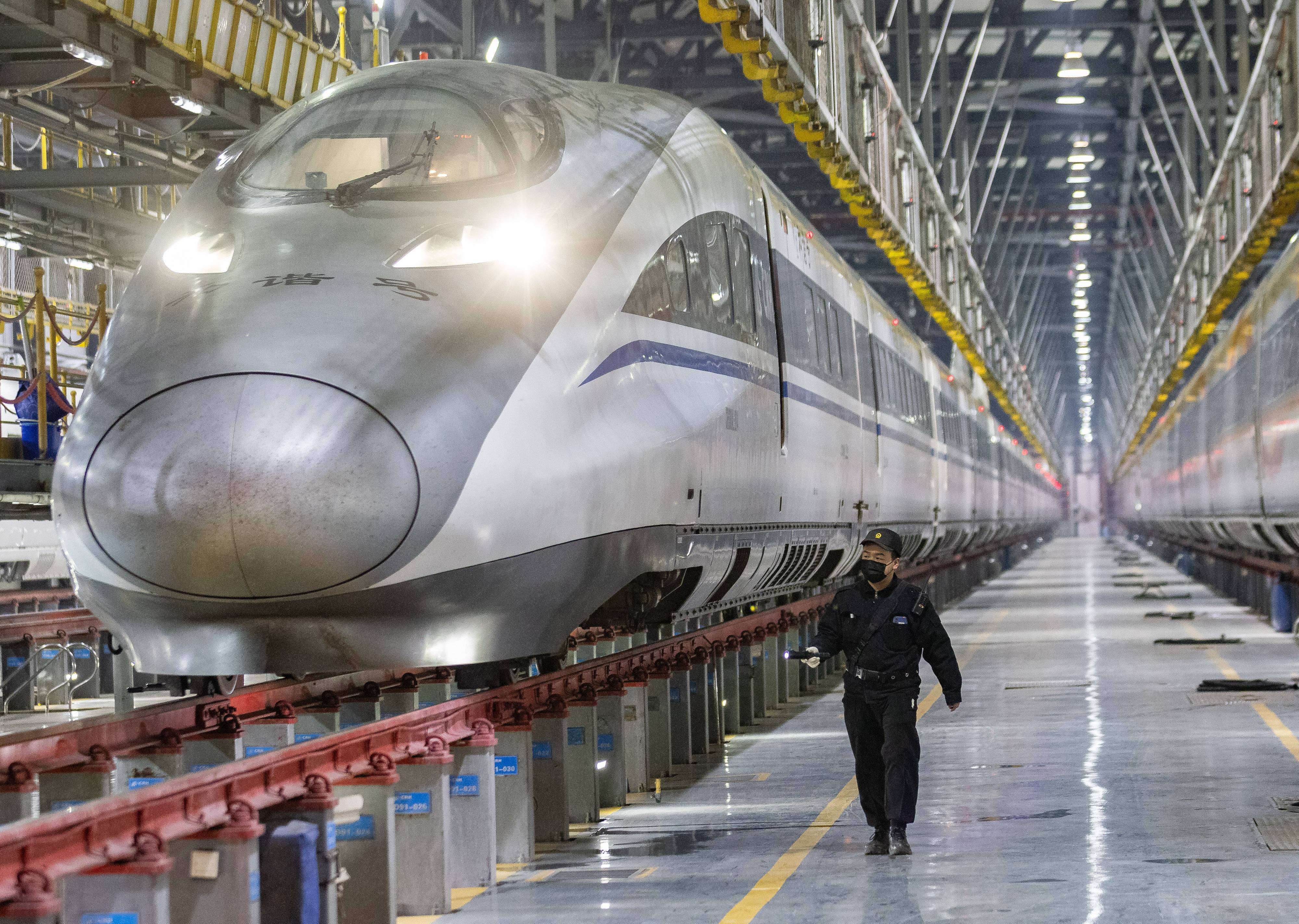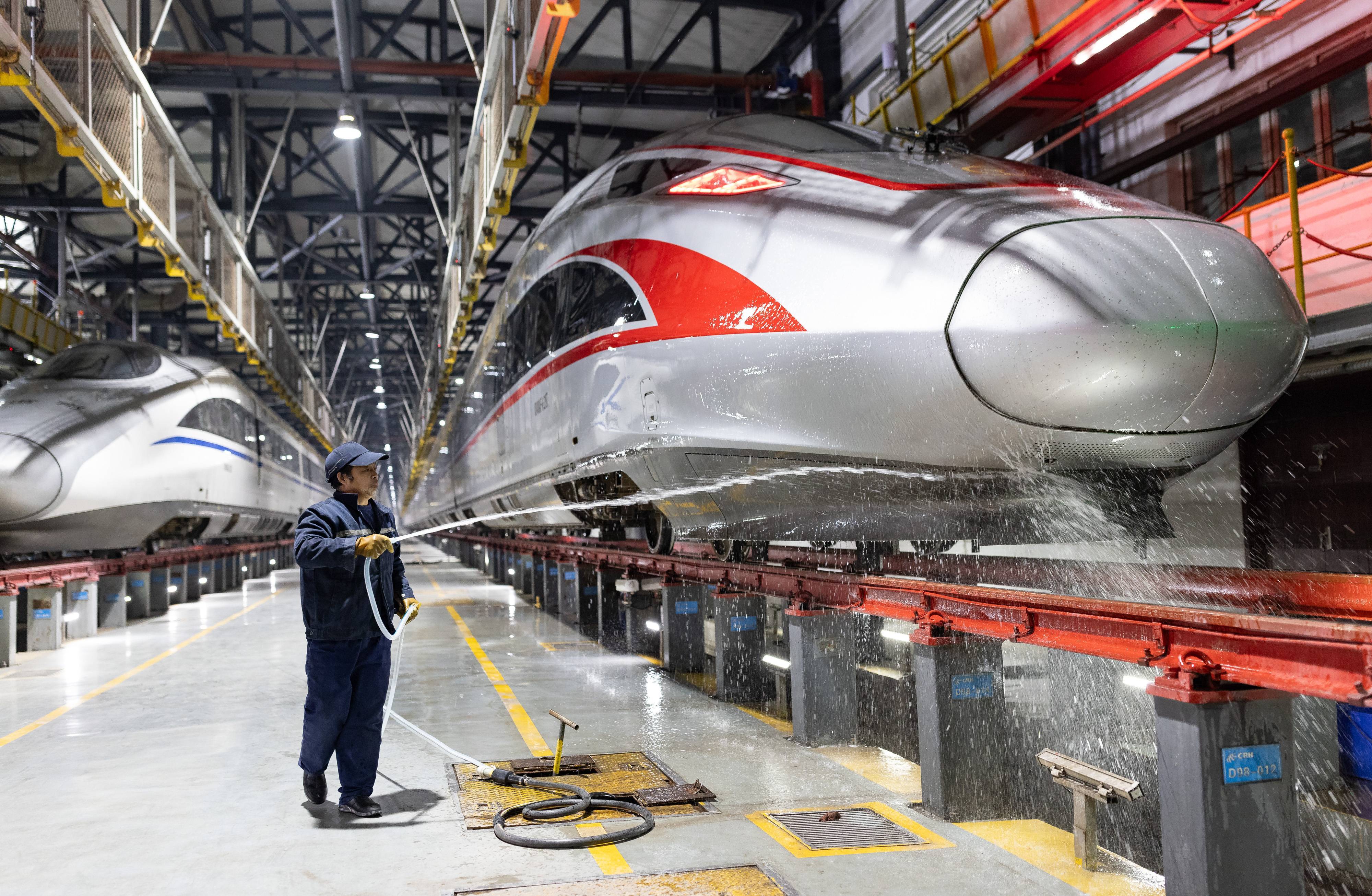 今日是2025年春运首日,近百组在武汉动车段经过检修、保温作业的动车组犹如“陆地舰队”,蓄势待发,迎接春运。(湖北日报全媒记者 柯皓 通讯员 单振标 杨彪 摄)