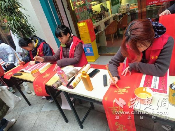 辖区青少年为居民写春联送祝福。 通讯员供图