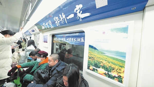 楚天都市报极目新闻讯(记者张秀娟 实习生赵子豪 通讯员胡义华 张平 刘双武)“大美新疆灵秀博州欢迎您”“秘境夏尔希里欢迎您”……1月14日上午10时许,在武汉地铁客流量最大的地铁2号线,正式开通运行新疆“博州号”主题专列。