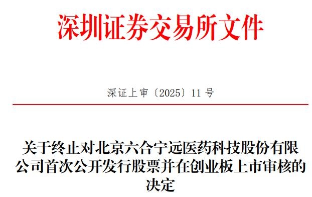 中国经济网北京1月15日讯 深交所网站日前公布关于终止对北京六合宁远医药科技股份有限公司(简称“六合宁远”)首次公开发行股票并在创业板上市审核的决定。