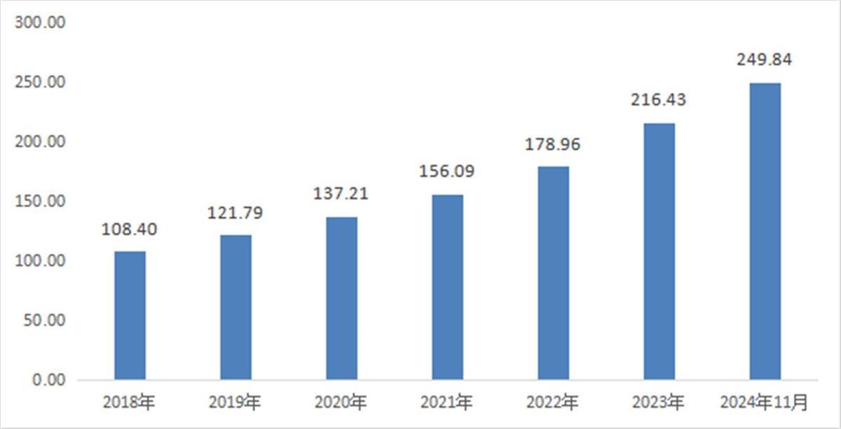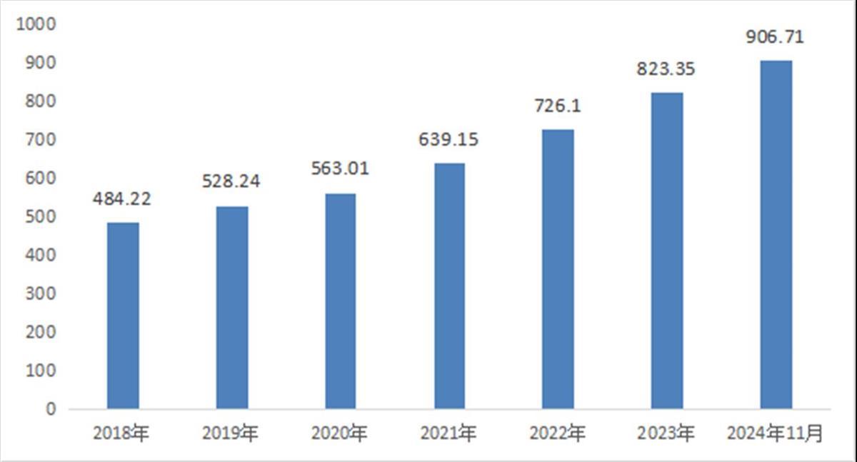 2018年—2024年11月湖北省民营经营主体数量(单位:万户)