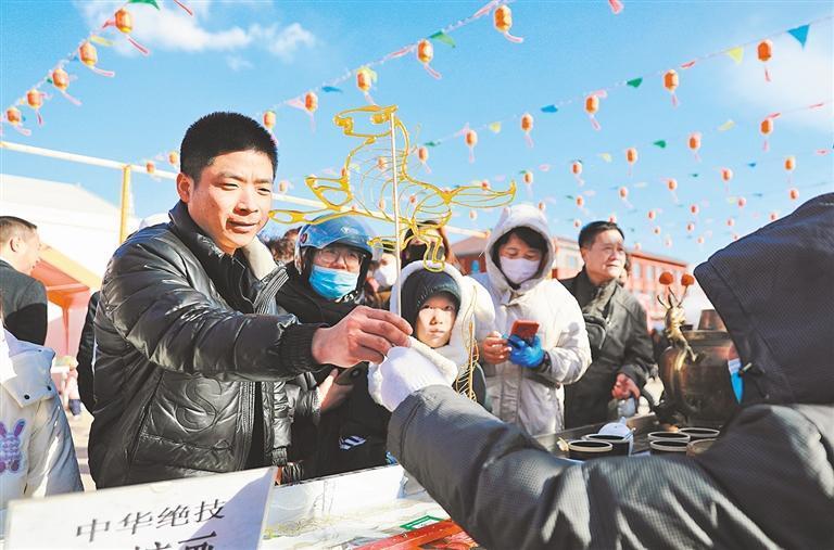 1月7日,天津芦台大集,充满新年味道的糖画吸引人们驻足。芦台大集有约350年历史,是目前天津规模最大的农村大集之一。王志臣摄(中经视觉)