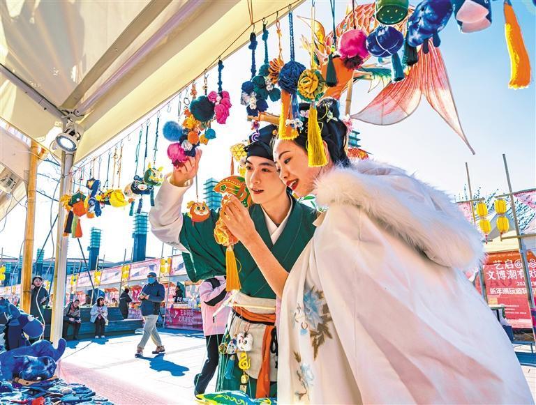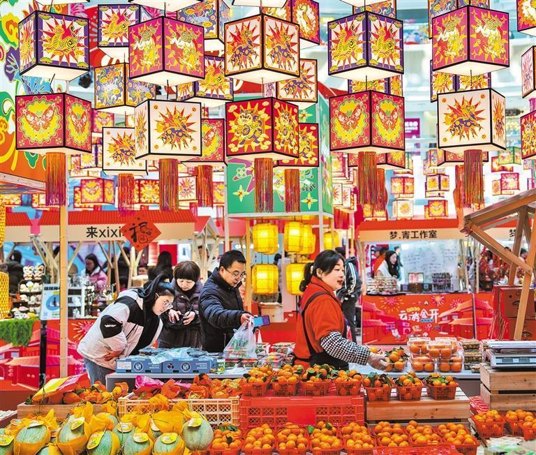 1月10日,江苏苏州工业园区文博商业广场新年市集,50余家年味、年俗、年礼摊位及童年游戏、非遗体验、书法春联等互动活动引来市民游客参观选购。张 锋摄(中经视觉)