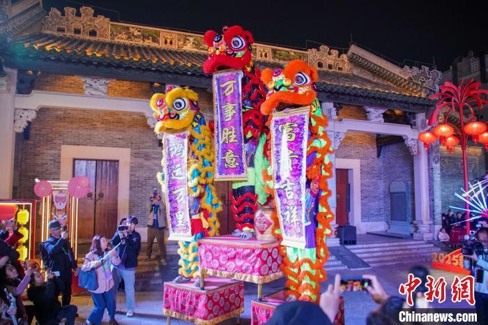 1月15日晚,广西南宁三街两巷上演民俗舞狮表演,向各方宾客展示南宁民俗文化的魅力。中新社记者 陈冠言 摄