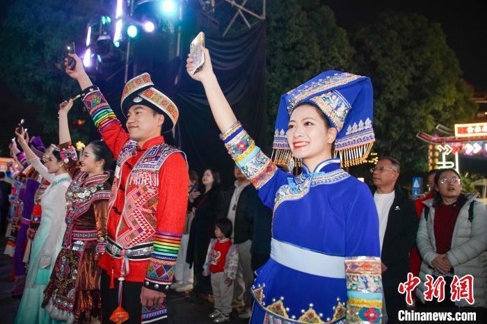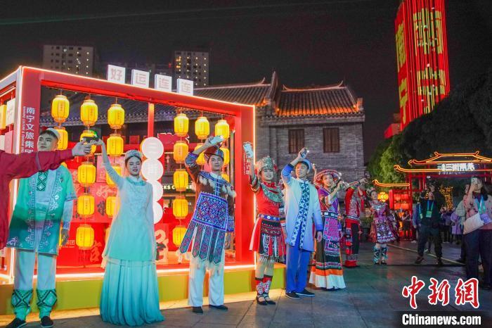 1月15日晚,广西南宁三街两巷上演多彩民族歌舞表演,向各方宾客展示南宁民俗文化的魅力。中新社记者 陈冠言 摄