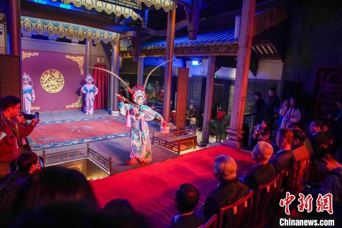 1月15日晚,参加“世界市长对话·南宁”活动的东盟国家嘉宾在广西南宁新会书院观摩邕剧《扈家庄》。中新社记者 陈冠言 摄