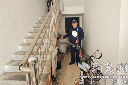 检查人员要求商户将电动车推到室外存放。朱俊 摄