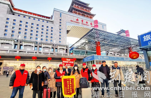 当天下午2点30分,在北京西站站前广场,钟祥开展“2025接您回家 春暖助团圆”活动的工作人员早已等候多时,有条不紊的引领返乡人员有序进站登车。