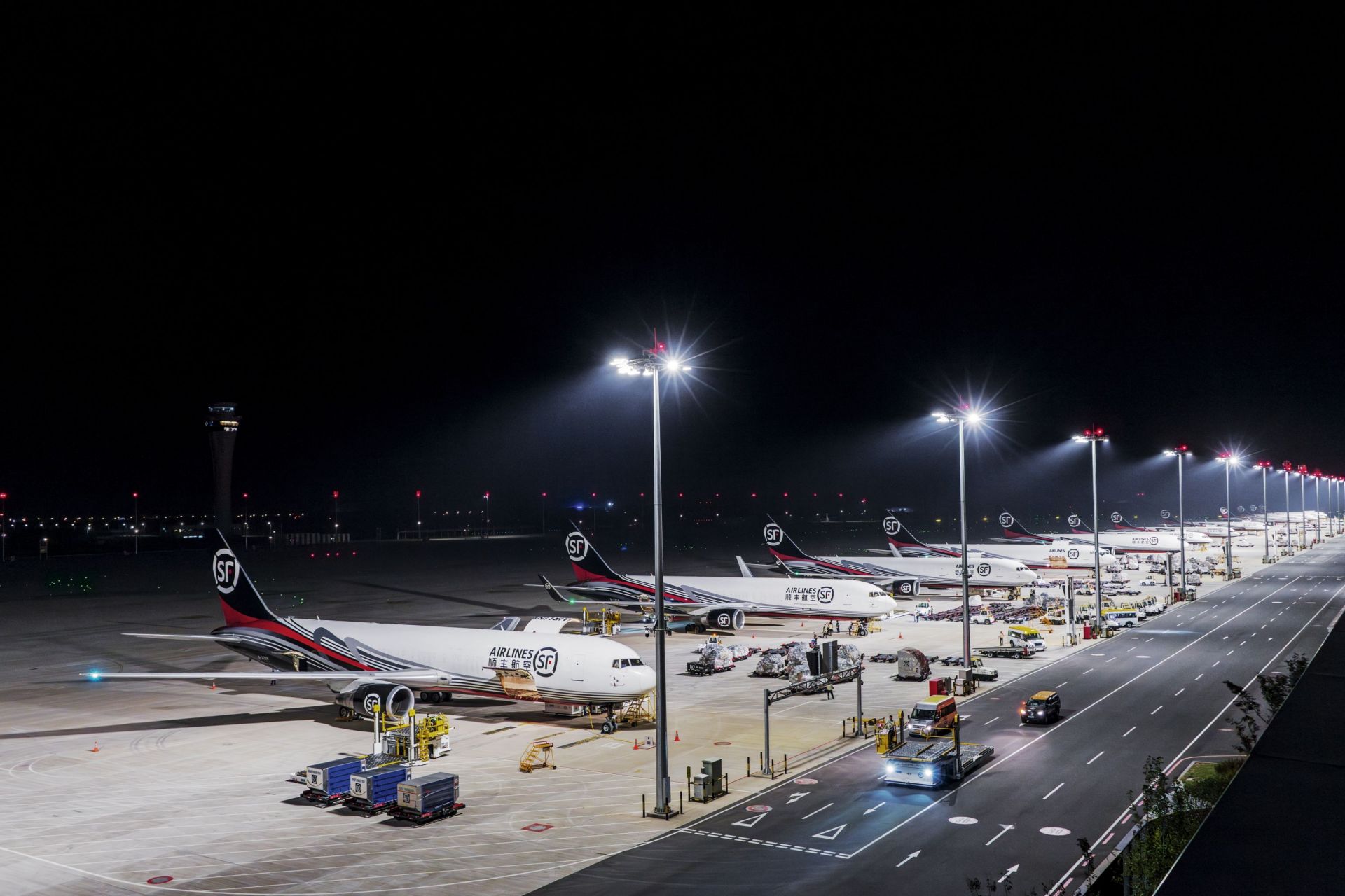凌晨,湖北鄂州花湖国际机场全货机航班陆续抵达。陈亮 摄