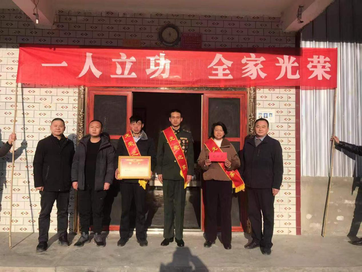 春节前夕,竹山县退役军人事务局联合县人武部、各乡镇,上门为全县6名三等功、35名“四有军人”立功受奖现役军人家庭开展春节送喜报活动,让“光荣之家”在这个新春佳节更“光荣”、更“喜庆”,将党和政府的关心关怀送到家门,将优抚政策落到实处,在全县营造了“你在部队建功立业,我在家乡尊崇褒扬”的浓厚氛围。
