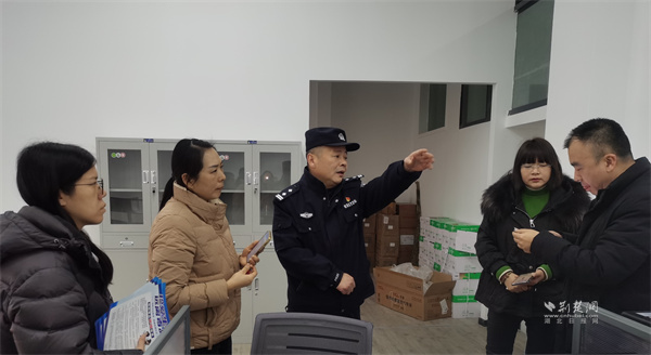 网格员与社区民警为商户讲解安全知识。 通讯员供图