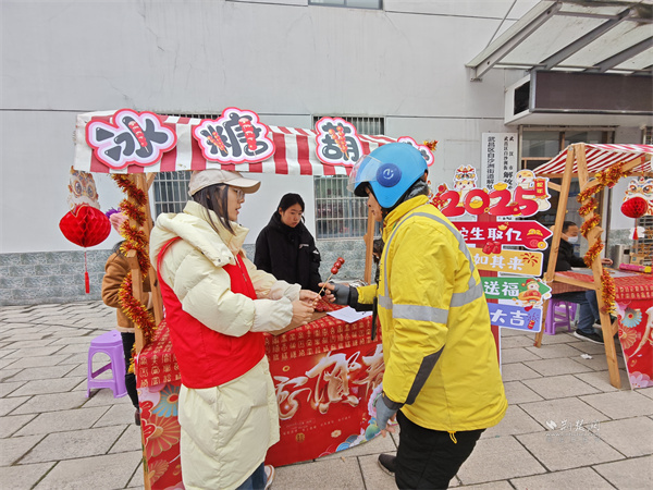 社区举办了新春游园活动。活动现场,美食制作、民俗风情展示及趣味游戏等各个项目区域令人眼花缭乱,吸引周边商户和辖区居民参与其中。在春联书写区,红彤彤的春联映衬着节日的喜庆,让居民提前沉浸在新春的喜悦之中;在“祥瑞送福”区,身着传统服饰的工作人员化身“福狮”,为居民送上真挚的新春祝福;手工灯笼、脸谱拨浪鼓制作区则热闹非凡,居民互相帮助,制作出一盏盏代表了喜庆的灯笼和拨浪鼓;冰糖葫芦和糖画制作区甜蜜十足,大家纷纷驻足品尝冰糖葫芦,感受冬日里的甜蜜。