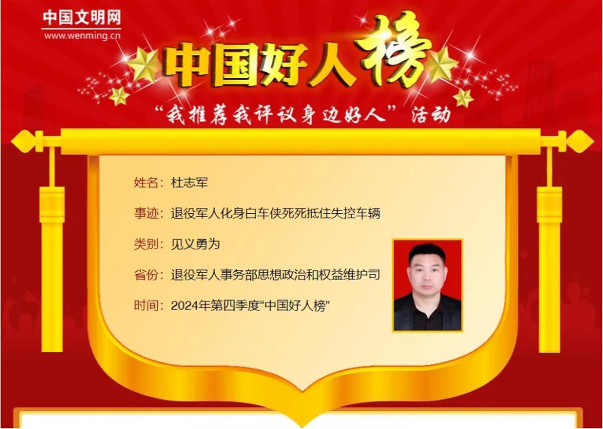 1月15日,2024年第四季度“中国好人榜”正式发布,湖北省共有9人上榜。其中,曾经荣登中央政法委见义勇为勇士季度榜的杜志军和陈赛超,也光荣上榜。