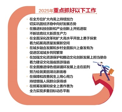 湖北省政府工作报告指出,全方位扩大内需,稳定预期、激发活力,推动经济持续回升向好;推动科技创新和产业创新融合发展,加快建设现代化产业体系;进一步全面深化改革,扩大高水平对外开放,加快打造内陆地区改革开放高地;更好统筹发展和安全,防范化解重点领域风险和外部冲击,保持社会大局平稳;高质量完成“十四五”规划目标任务,为实现“十五五”良好开局打牢基础;努力在长江经济带高质量发展中奋勇争先,加快建成中部地区崛起的重要战略支点,奋力谱写中国式现代化湖北篇章。