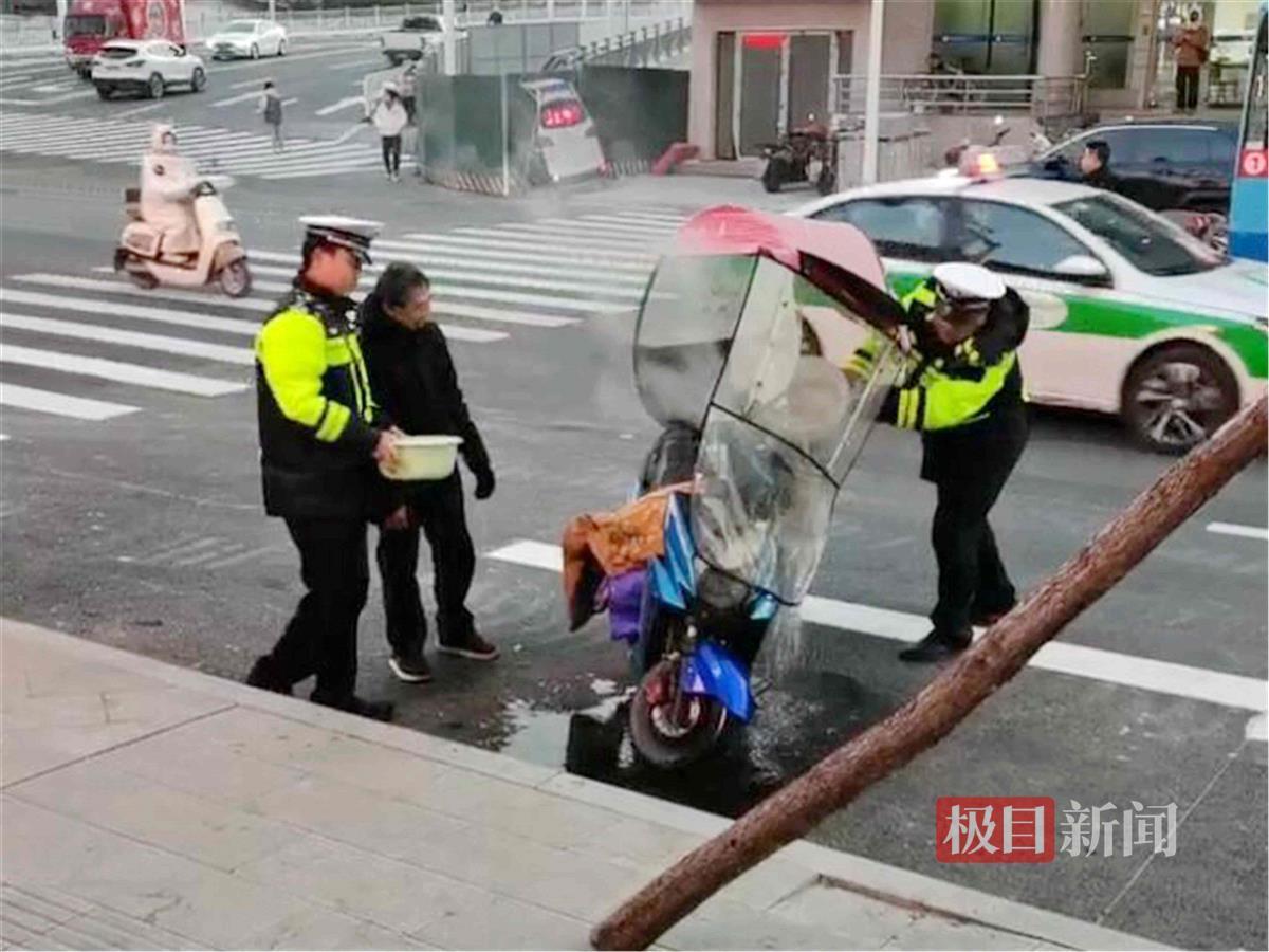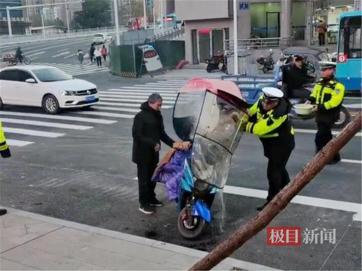 1月14日下午,在湖北省襄阳市保康县城清溪路与南关街交叉路口处,一辆电动两轮踏板摩托车突然起火,情况危急。所幸,当地三名执勤交警发现处置及时,快速飞奔路边商铺,端来两盆水将大火扑灭,避免了火势进一步扩大,最大限度降低了车主损失。