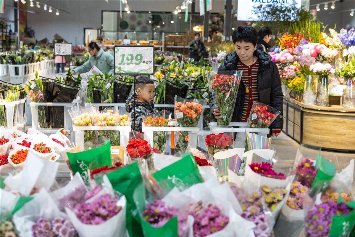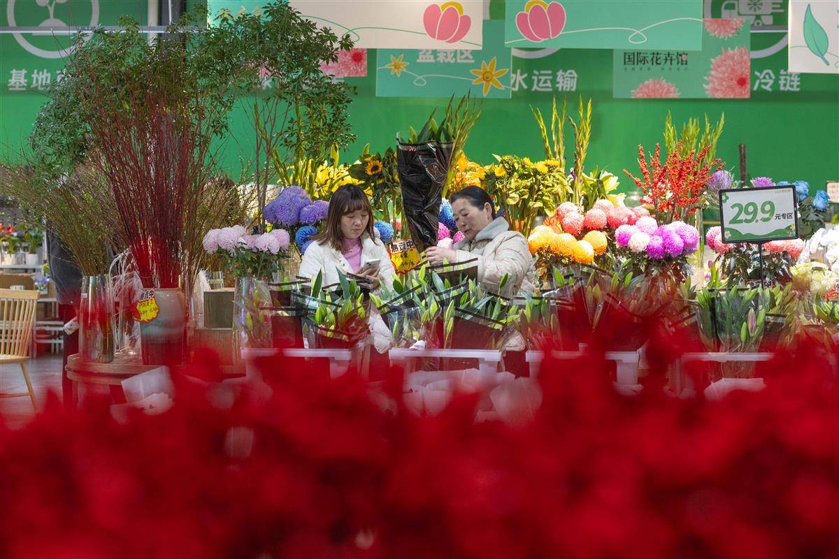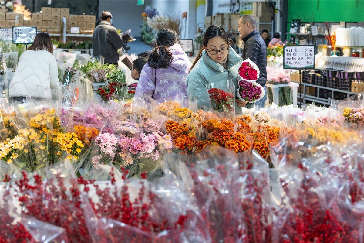 贴春联、挂灯笼、春节临近,年宵花市场一片火热。2025年1月16日,在武汉市黄陂区汉口北鲜花小镇,各色花卉争奇斗艳,蝴蝶兰、冬青、佛手柑、蜡梅等年宵花已大量上新,吸引了不少市民前来选购,为家里增添喜庆气氛。(湖北日报全媒记者 倪娜 通讯员 熊海蓉 摄)