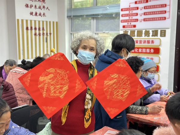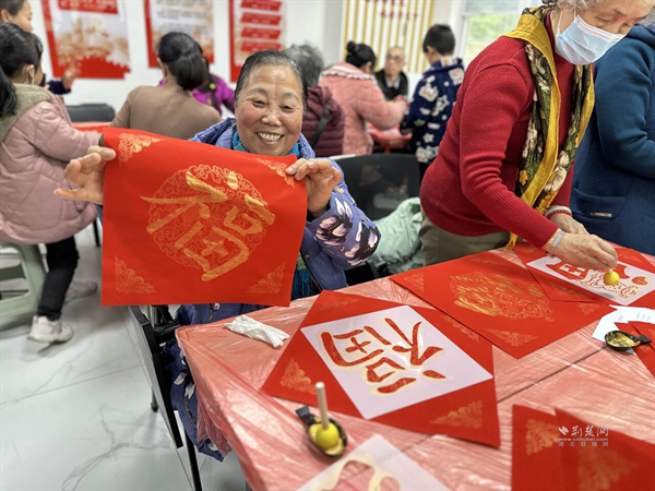 荆楚网(湖北日报网)讯(通讯员 方婷)为弘扬中华优秀传统文化,丰富居民精神文化生活,促进邻里间的交流,近日,武汉市武昌区白沙洲街道城南社区联合众成颐家养老服务中心,举办了一场非遗拓印“福”字活动。